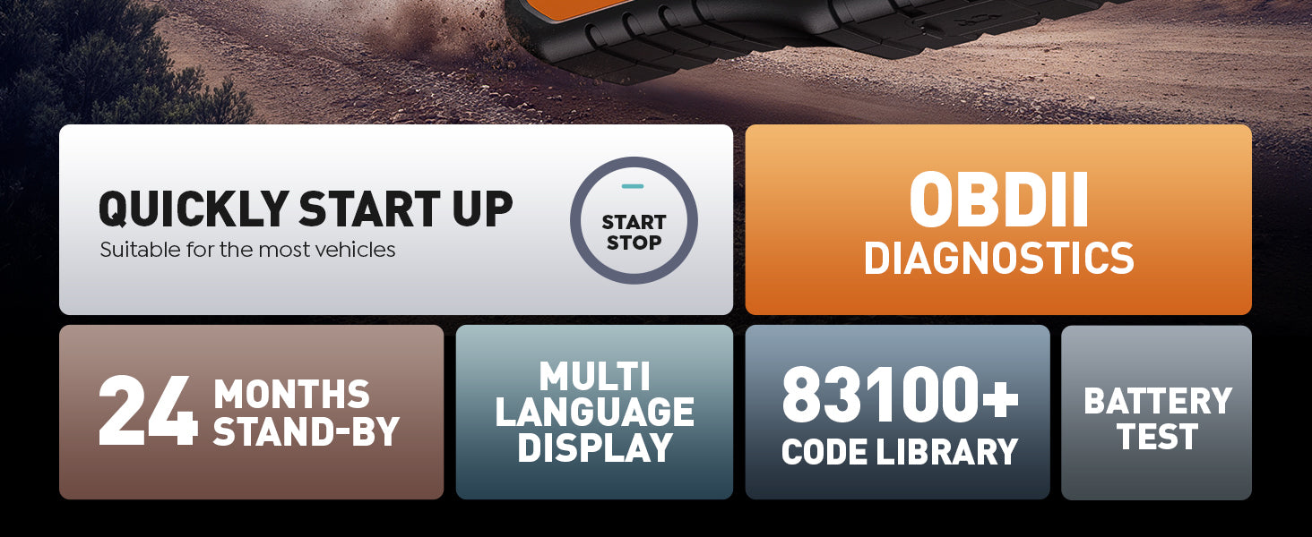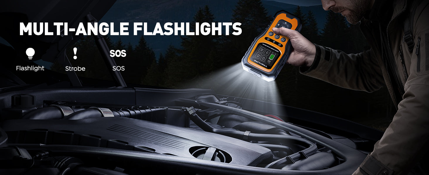 - 【Built for Safety and Clarity in Every Detail】Your jumper box for car battery portable features a 2.8-Inch intuitive color screen that supports 13 languages for clear diagnostics. Get peace of mind with V0 rated flame retardant materials and a reinforced shockproof casing, and a secure, ergonomic grip that prevents slips during use.