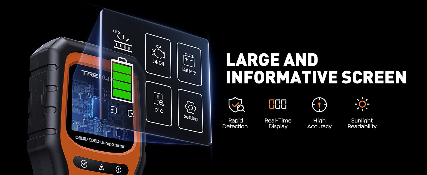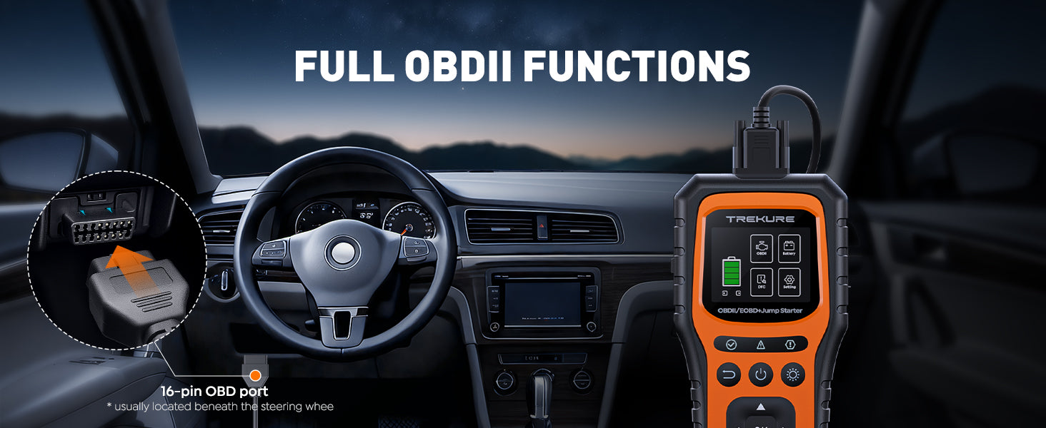 - 【The End of Separate Jump Starters and OBD2 Scanners】 Why carry two devices when one does it all? This ultimate car diagnostic tool and jumper cables for car combo instantly diagnoses check engine codes and jump start your dead battery, saving you space, time, and money.