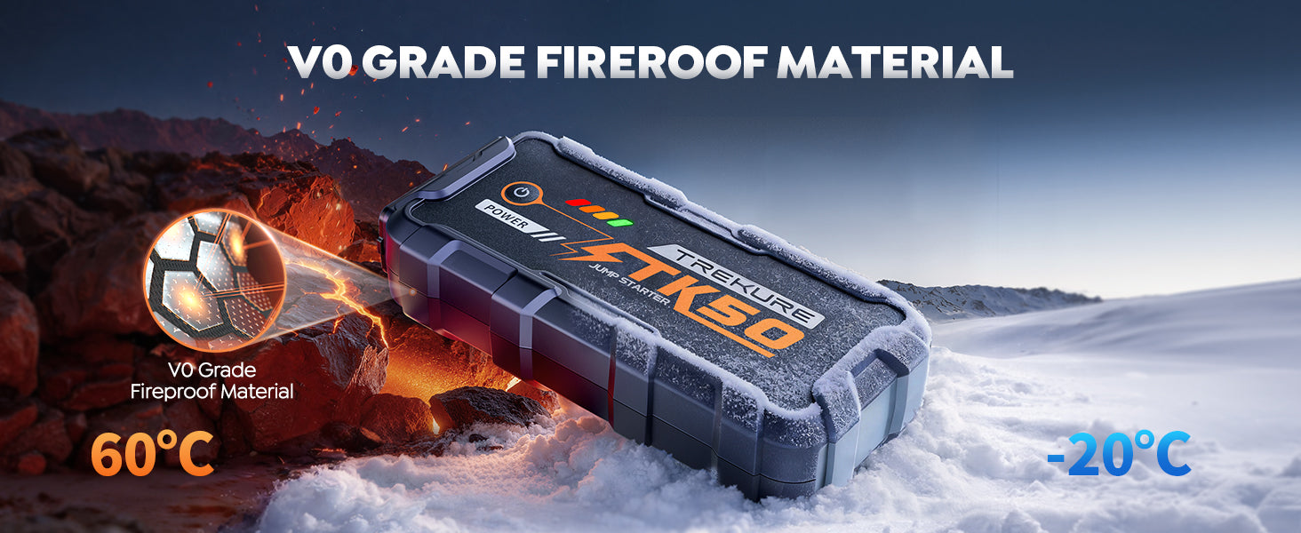 - 【EASY TO OPERATE & READY FOR ANY CHALLENGE】Say goodbye to complicated buttons and steps— just three simple steps: power on, connect the jump starter, and attach it to your car battery. Easy start, every time. Built with a waterproof, dustproof, and shock-resistant shell, this car starter jump box ensures reliable performance even in the harshest weather conditions. Whether it's rainy, snowy, or dusty, it works consistently, giving you peace of mind in any environment.
